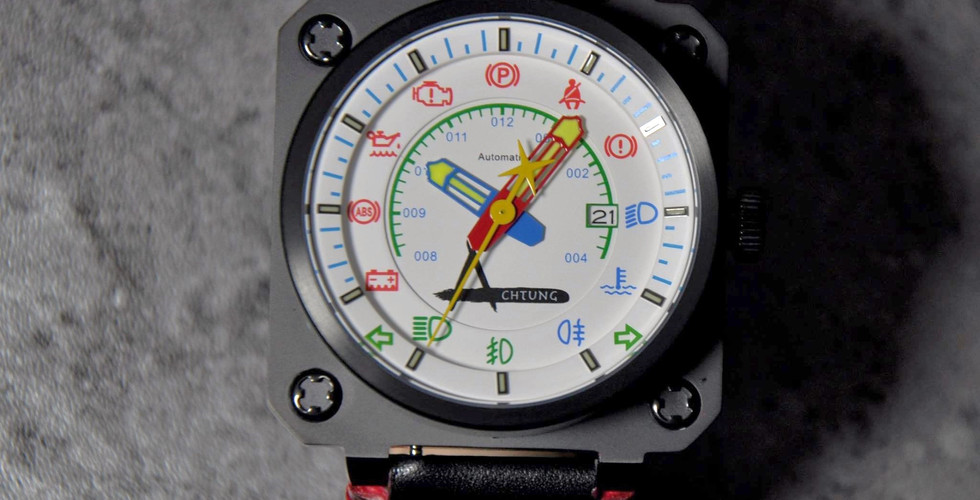 这款表很玩味,表盘上的时标旁是汽车仪表盘的指示灯,应该都看得懂吧?(售价660美元)