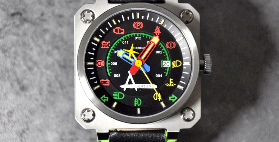 看着眼前色彩缤纷又大号的Achtung Time腕表,这外表有点搞怪的腕表吸引了我,是表示我内心里也藏着那么一点的童趣,或许你也忘了自己有多久没有放轻松。Achtung的宗旨很简单,因为相信每个人都有好玩可爱的一面,所以在腕表设计上融入不少趣味性的元素。